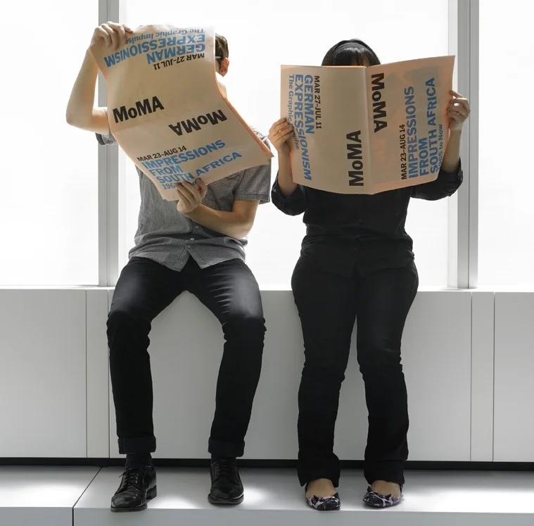 The MoMA marketing team had a small budget to promote two print exhibitions on view around the same time: German Expressionism: The Graphic Impulse and Impressions from South Africa: 1965 to Now. Our solution was to get old-school and print a two-color portfolio on peach newsprint, distributed not just in the exhibition but in coffee shops around the city. The powerful imagery (naturally) reproduced fantastically in this format, and designer Jesse Reed really created an impactful thing of beauty. I wrote copy and collaborated on the layout of the dense-packed central spread, which leavened the usual promotional info (exhibition descriptions, catalogue info, tickets and hours) with a historical timeline, quotes, and a handy guide to different kinds of printmaking. A very fun project, and one we were all proud of in the end.